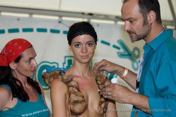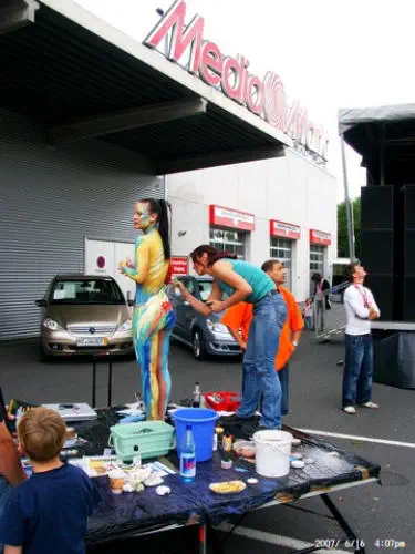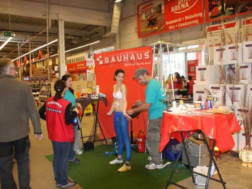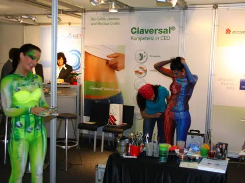 Besonders bei Messeveranstaltungen ist Bodypainting immer ein gefragter Eyecatcher. Bereits das bemalen der Körper vor Ort übt eine magische Kraft auf Messebesucher aus. Das versehen der Körper mit einem Kundenspezifischen Painting und der meist folgende Gang durch die Messehallen schafft hohe Aufmerksamkeit.